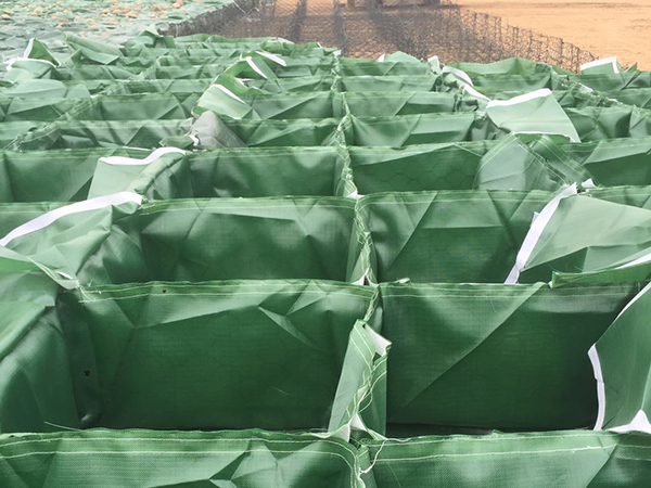 土工石籠袋是由單股單一纖維編制而成的筒狀布加工而成,原材料以聚丙烯和聚酯纖維為主,因其常配合石籠共同土木防護(hù)工程,所以被稱之為土工石籠袋。